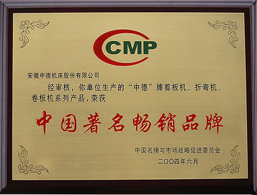 中德牌机床获得“中国著名畅销品牌”荣誉称号