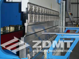 补偿机构:采用滑块和工作台双向补偿,实现无盲区补偿,从而保证折弯的精度。