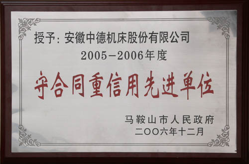 𒁃    我公司成为马鞍山市合同信用协会成立大会的理事单位,同时被市政府授予马鞍山市2005-2006年度守合同重信用先进单位称号。