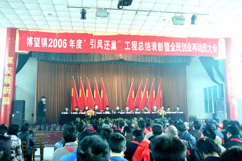 2007年2月26日上午9时,博望镇2006年度“引凤还巢”工程总结表彰和全民创业再动员大会在博望文体中心隆重举行,当涂县县长操隆山、县委常委、博望镇党委书记张清、镇长刘国宝等出席了大会并作了重要讲话。会议对2006年度“引凤还巢”和全民创业两大工程中涌现出的各类先进集体、先进个人予以了表彰并对2007年的工作进行了全部的部署。