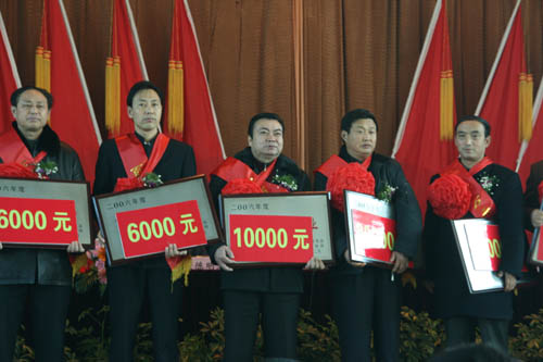 ♓    我公司获得了“纳税大户”(奖金10000元)和“品牌与科技创新先进企业”(奖金2000元)两项大奖,我司青岛办事处经理杨墨同志个人荣获了“十佳推销员”称号。