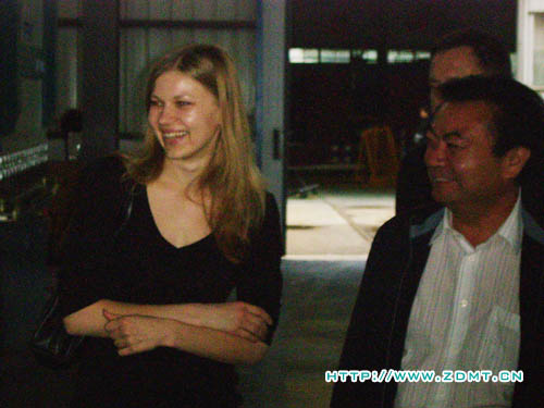 ဣ    在南京火车站的出口处,我们见到了我们的白俄罗斯朋友,让我们惊讶的是Inna女士说着一口流利的中文,与我们交流完全不成问题,如果不看她那蓝色的眼睛和金色的头发,光听她说话,可能所有的人都会认为她是一个标准的中国人。而Dzmitry先生则是用俄语交流,这样Inna小姐就充当了在我们公司与Elementary Machine公司经理Dzmitry先生之间的翻译,汽车一路飞驰,很快,我们就来到了公司驻地,公司董事长、总经理郑长玉、副总经理郑小平等公司领导接待了来访宾客。