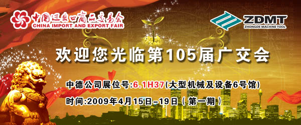 中德机床将参加第105届春季广交会,具体时间和地点是广交会一期,4月15—4月12日,琶洲馆大型设备及机械展区(6号馆),展位号 6.1H37。欢迎各位新老客户光临。