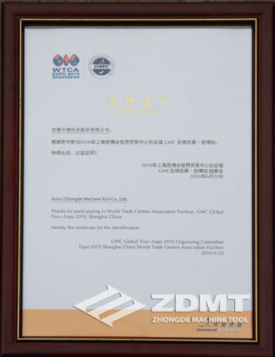 2010年7月1日下午,一场贴上“中国制造,世界的骄傲”标签的各行业标志性品牌在上海世博会世界贸易中心协会GMC馆高调亮相。安徽中德机床股份有限公司领航国内机床行业其他品牌,作为行业代表身份出席,参加了企业亮灯仪式同时接受GMC委员会颁发的奖牌和证书,正式成为“20多年世博会时代货易中行业协会馆赞助商商GMC一员♏”,此举在对中德机床综合实力提升和在行业中领先地位的充分肯定的同时,也对我们提出了更高的要求,我们将为创建一个具有国际竞争力的卓越企业、锻造一个具有百年发展的民族品牌而继续努力!