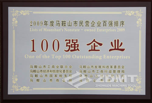 由市工商联、市发改委、经信委、工商局、国税局、地税局、商务局、统计局共同组织开展的马鞍山市2009年度民营企业百强排序活动揭晓。中德机床公司榜上有名,分列“2009年度马鞍山市民营企业营业收入100强”第70位、“2009年度马鞍山市民营企业纳税总额100强”第87位。